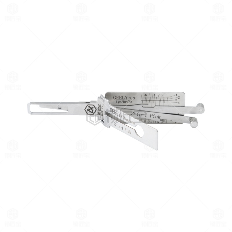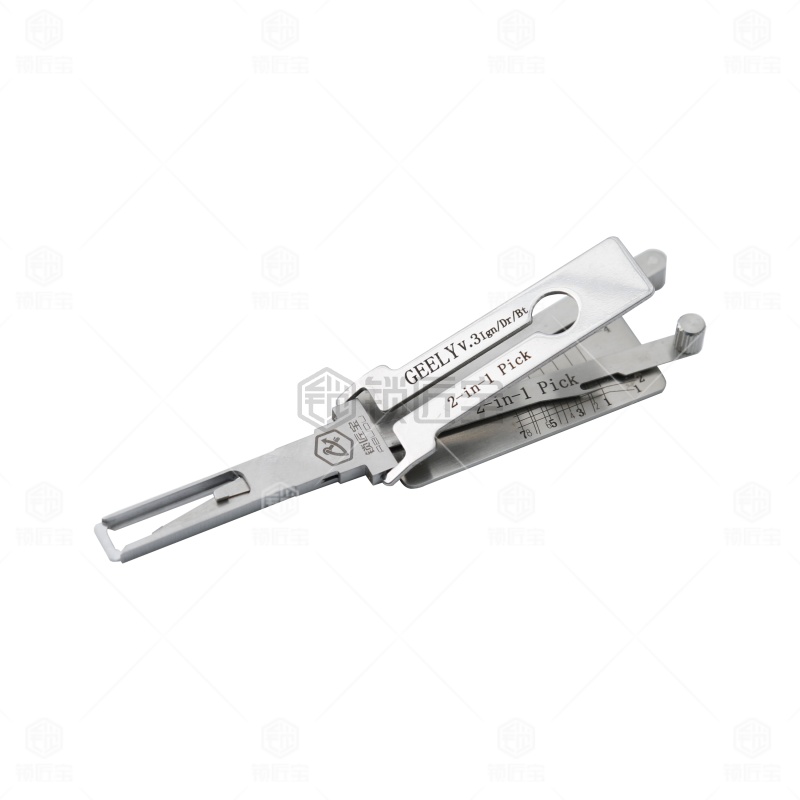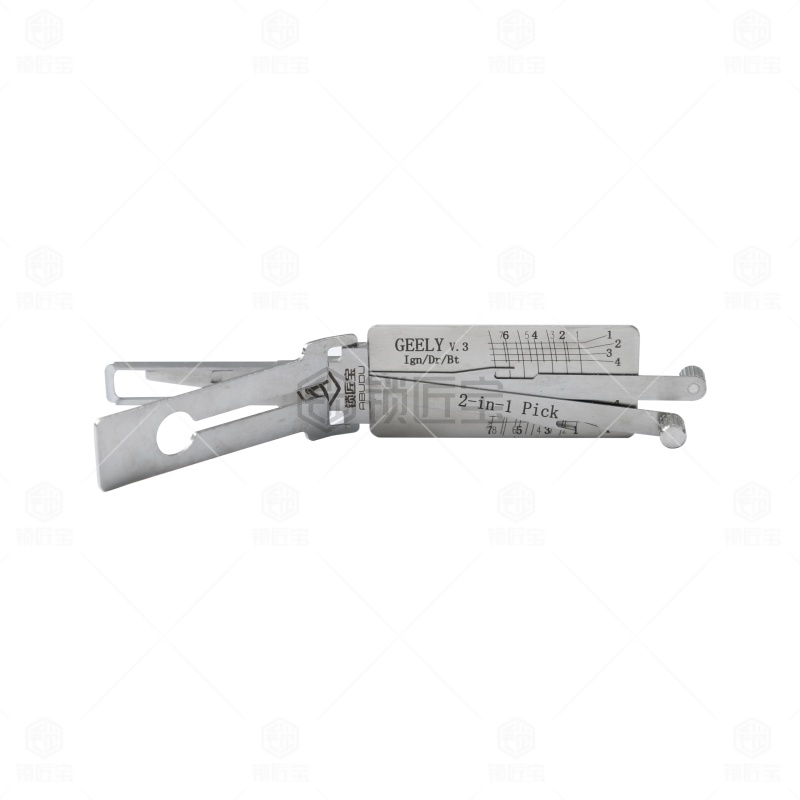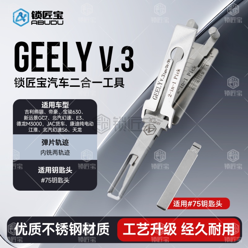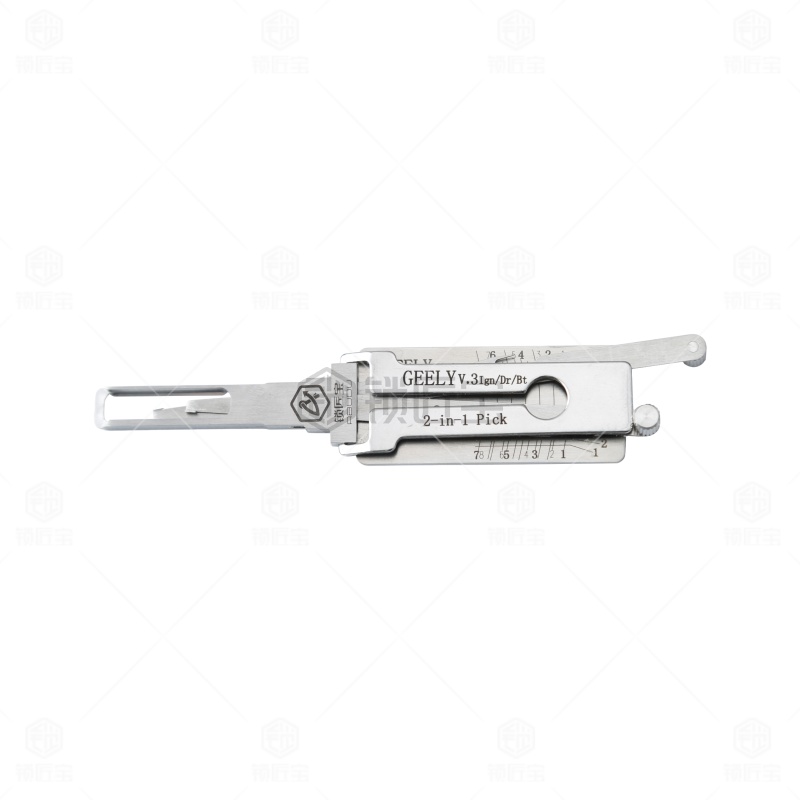 GEELY吉利一代汽车锁锁匠宝二合一工具采用内铣两轨迹设计,集读齿与开启于一体,适用于吉利熊猫、帝豪、新远景GC7(需后抽约0.2mm)、宝骏630(7齿可用)、北汽幻速/幻速S6、E3、德龙M3000、JAC货车、江淮(75号)、天龙及康迪纯电动等多种车型,兼容性强,操作顺畅,适合锁匠多车型日常使用。